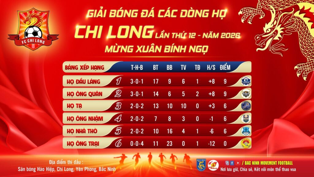 Vòng đấu thứ 4 giải bóng đá các dòng họ thôn Chi Long năm 2025 đã khép lại với nhiều diễn biến hấp dẫn, trong đó những ứng viên vô địch tiếp tục thể hiện sức mạnh vượt trội, tạo lợi thế lớn trước vòng đấu cuối cùng.