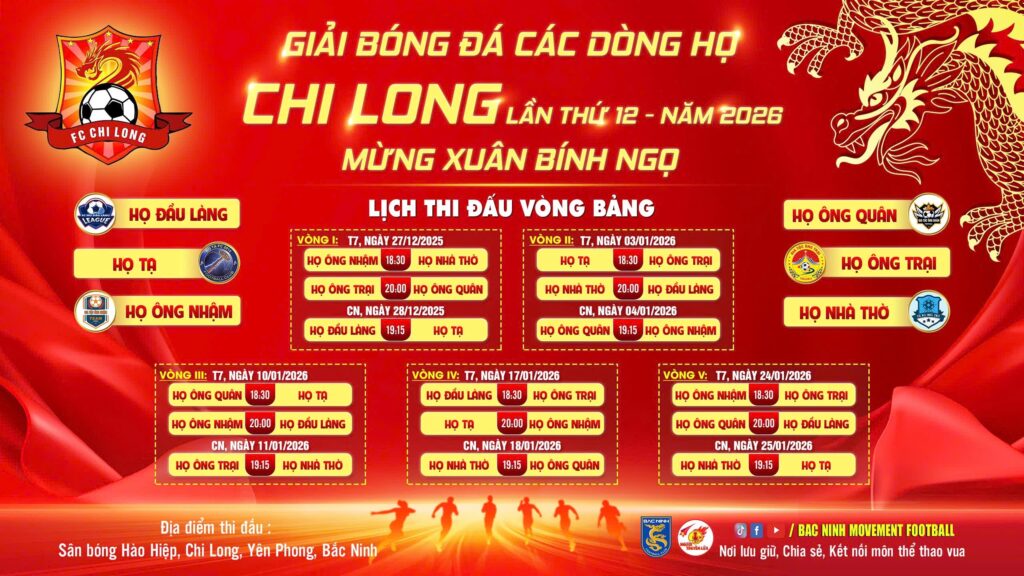 Giải đấu chính thức khởi tranh từ ngày 27/12/2025. Các trận đấu diễn ra vào thứ 7-cn hàng tuần trên sân bóng Hào Hiệp – Chi Long. Toàn bộ các trận đấu sẽ được tường thuật trực tiếp trên kênh BacNinh Movenmet Football, nó cũng chính là cái cách mà btc lưu giữ lại những hình ảnh tư liệu về một giải đấu dòng họ lâu đời nhất Bắc Ninh.